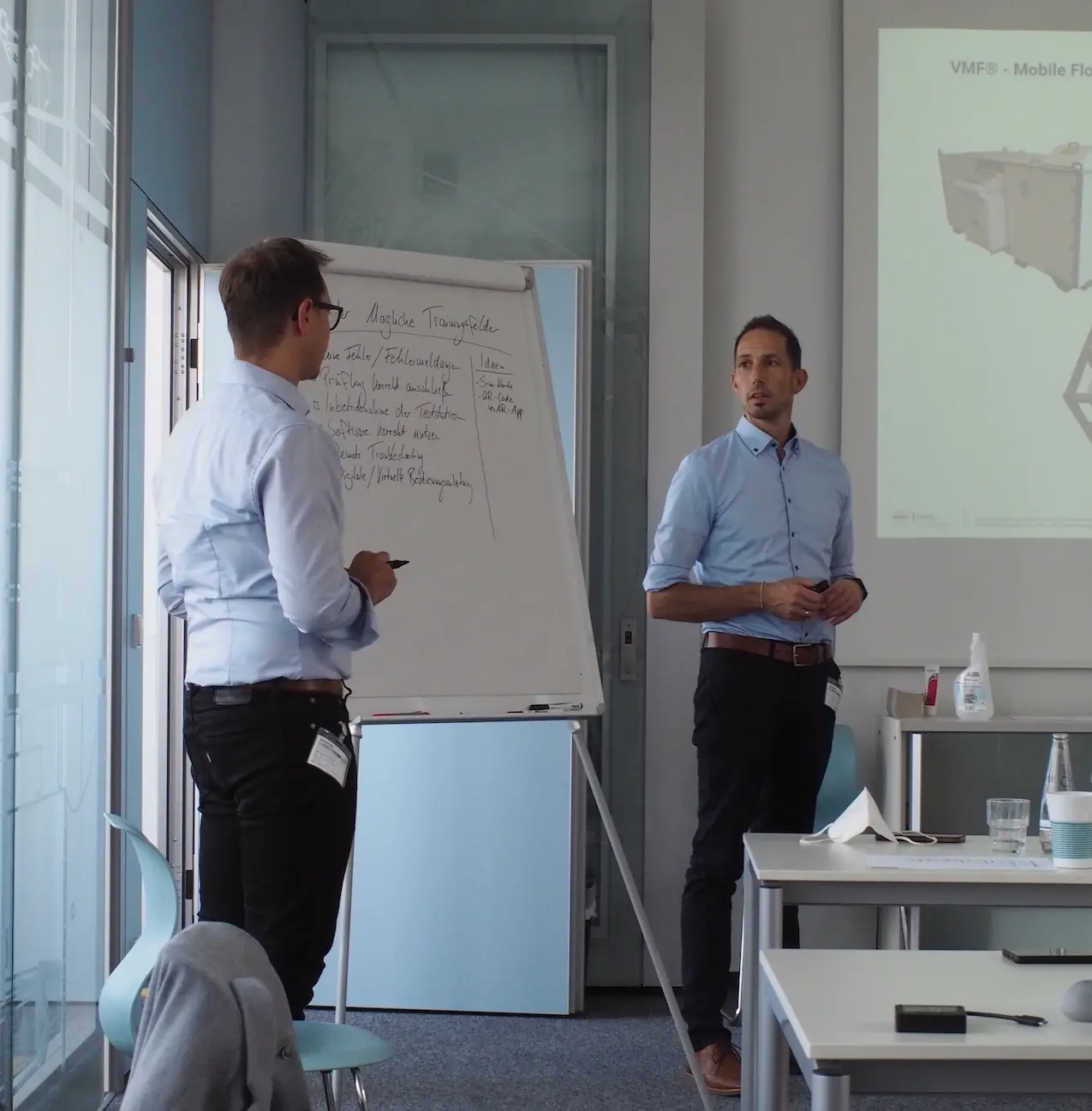 During the lunch break, the lively discussions continued and so the topic of the afternoon was already well prepared: In the consortium, we now addressed the question of which use cases from the companies are most promising for the first prototypes. All partners used this exchange to already outline very concrete challenges and first use cases. In the discussion, these were further concretized and recorded. The next steps and tasks for the on-site visits were already roughly planned and the to-do lists of the research team grew all by themselves...